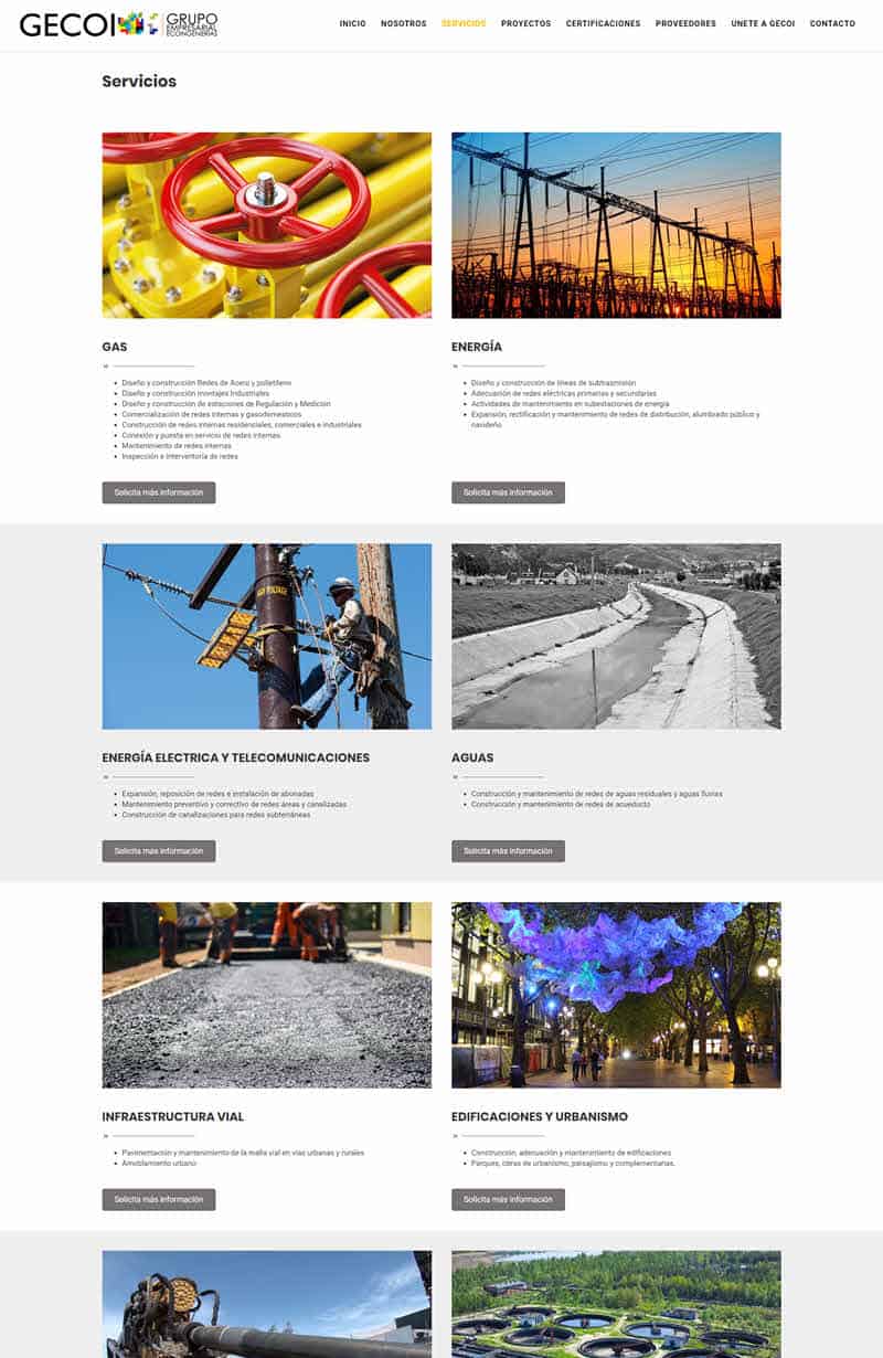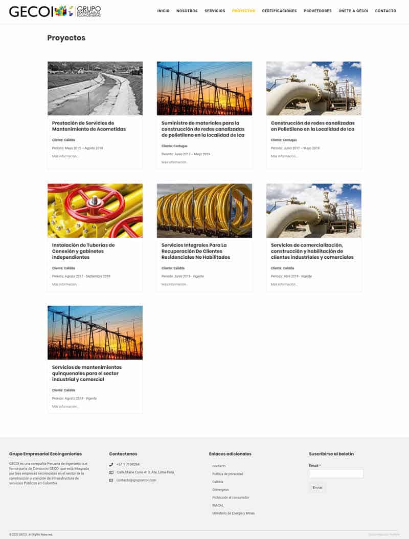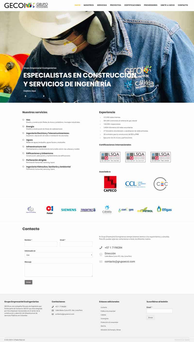 Grupo Empresarial Eco Ingenierías nos encargo la actualización de su pagina web para que vaya de la mano con una propuesta avanzada y que se pueda visualizar en todos los dispositivos modernos. El resultado es una pagina corporativa moderna con funcionalidad de manejo de contenidos. Los objetivos eran destacar los proyectos y trabajos realizados mediante el uso de técnicas certificadas. Adicionalmente era necesario integrar un sistema de chat para estar en contacto con los clientes y proveedores. La sección de noticias es administrada por el cliente.