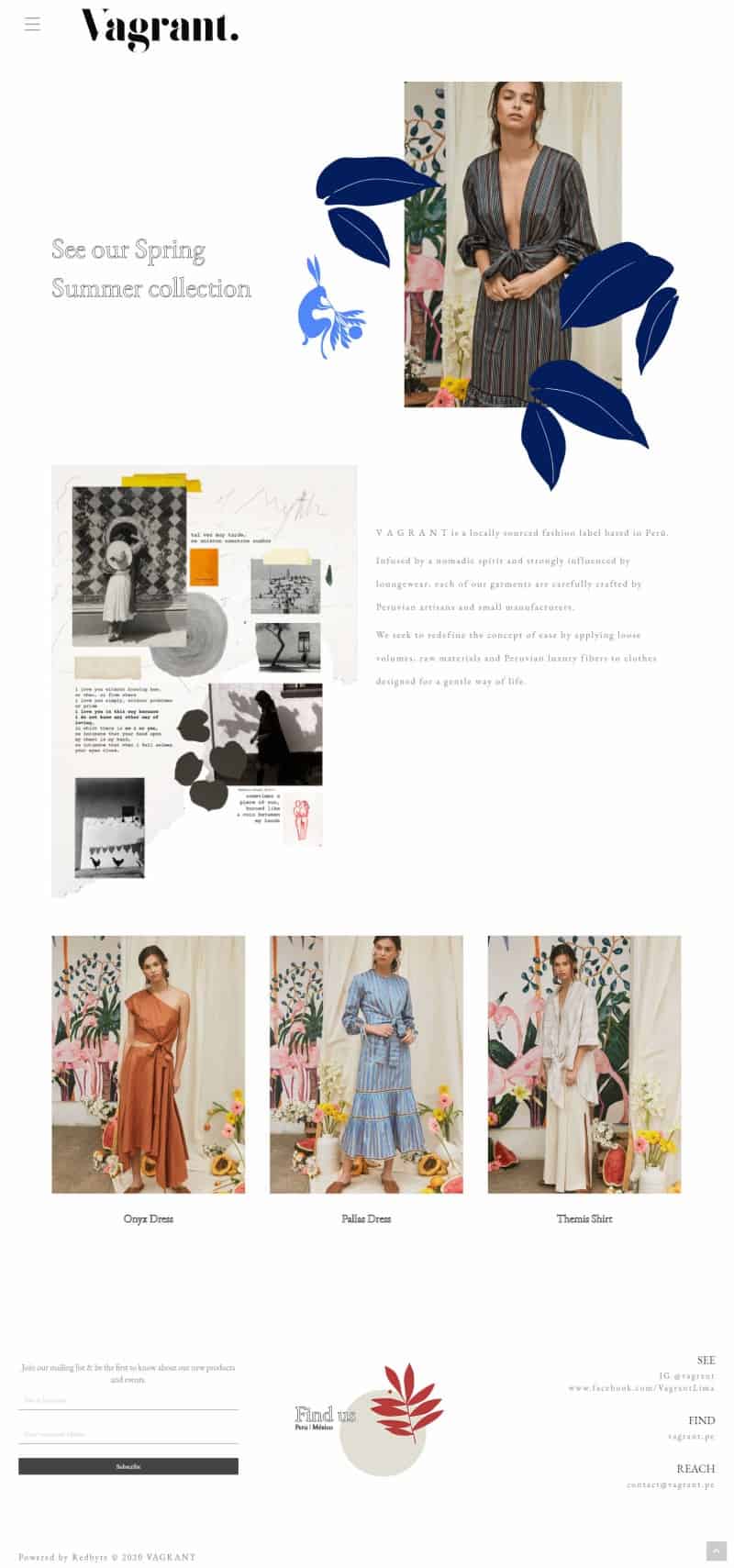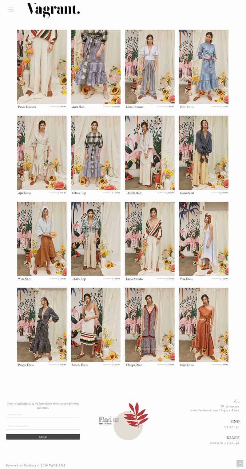 La marca de moda Vagrant requiere un catalogo web administrable para promocionar las colecciones que desarrolla. El catalogo debe cumplir con la imagen propuesta para cada colección dentro de un esquema de fácil navegación. Con opción para un sistema de pedidos Intranet con acceso restringido y múltiples atributos por producto