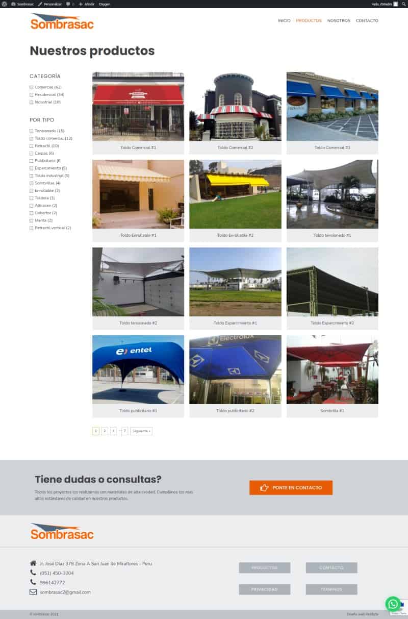 Diseño y desarrollo de pagina web empresarial con catalogo de productos, motor de búsqueda y filtros.