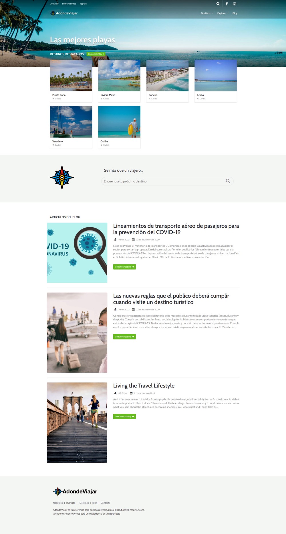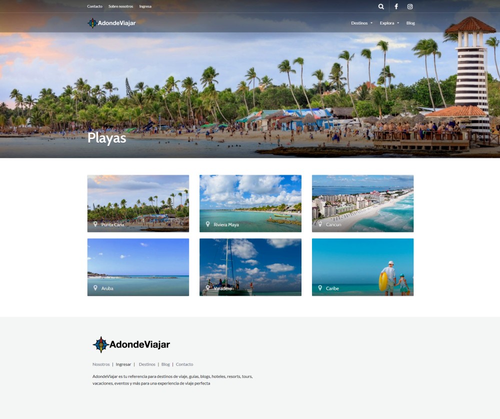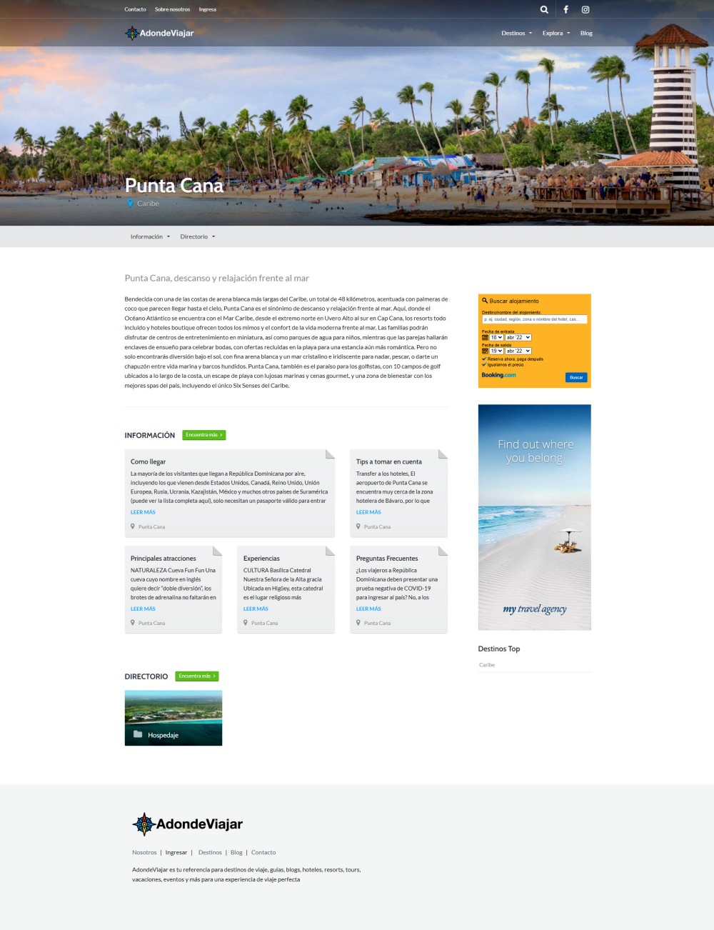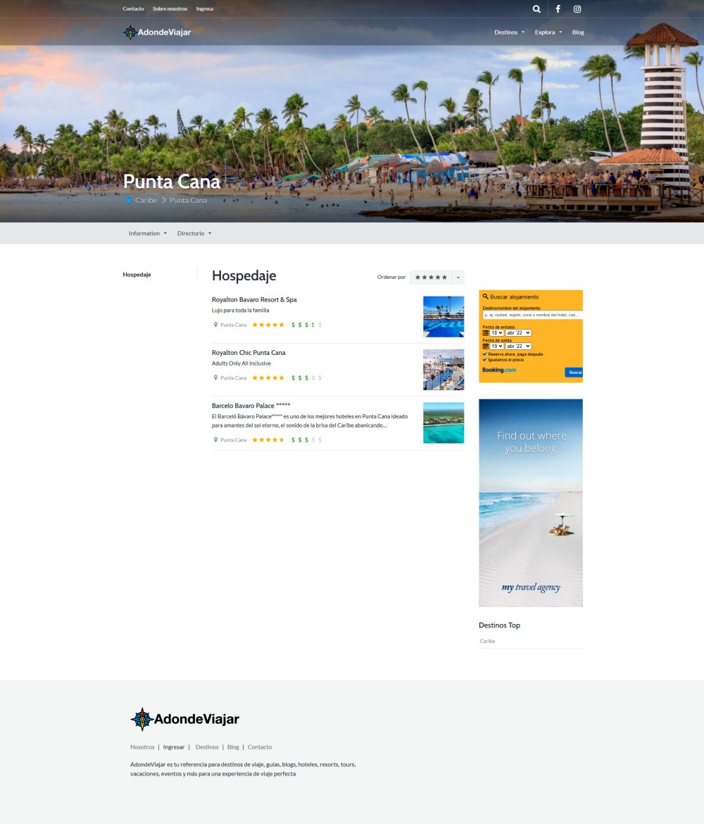 Desarrollo de un portal web con directorio para destinos de viaje. 100% configurable y administrable desde un panel de control el cliente puede ir agregando lugares y agruparlos en categorías. Cada destino cuenta con un directorio individual para información relacionada de hospedajes, restaurantes, atracciones, etc.