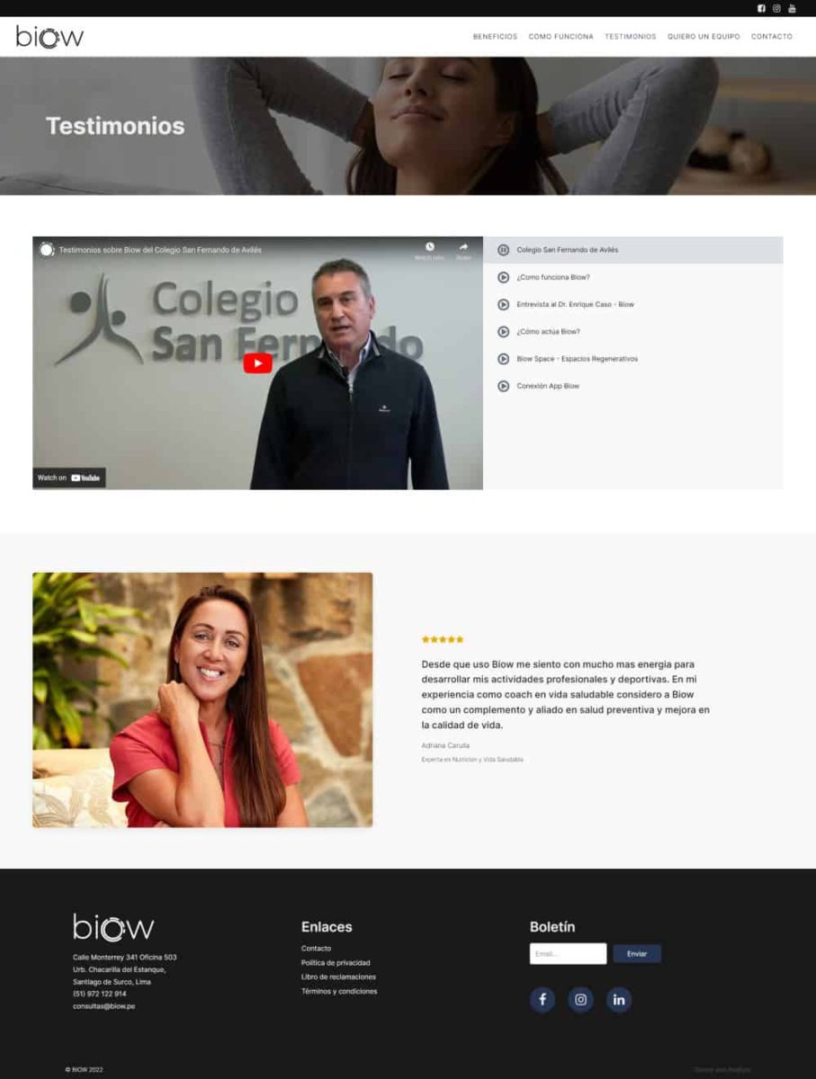 Desarrollo de pagina web corporativa con blog, testimonios, galerías, formularios de contacto con registro en base de datos. Optimizado para equipos móviles y carga rápida