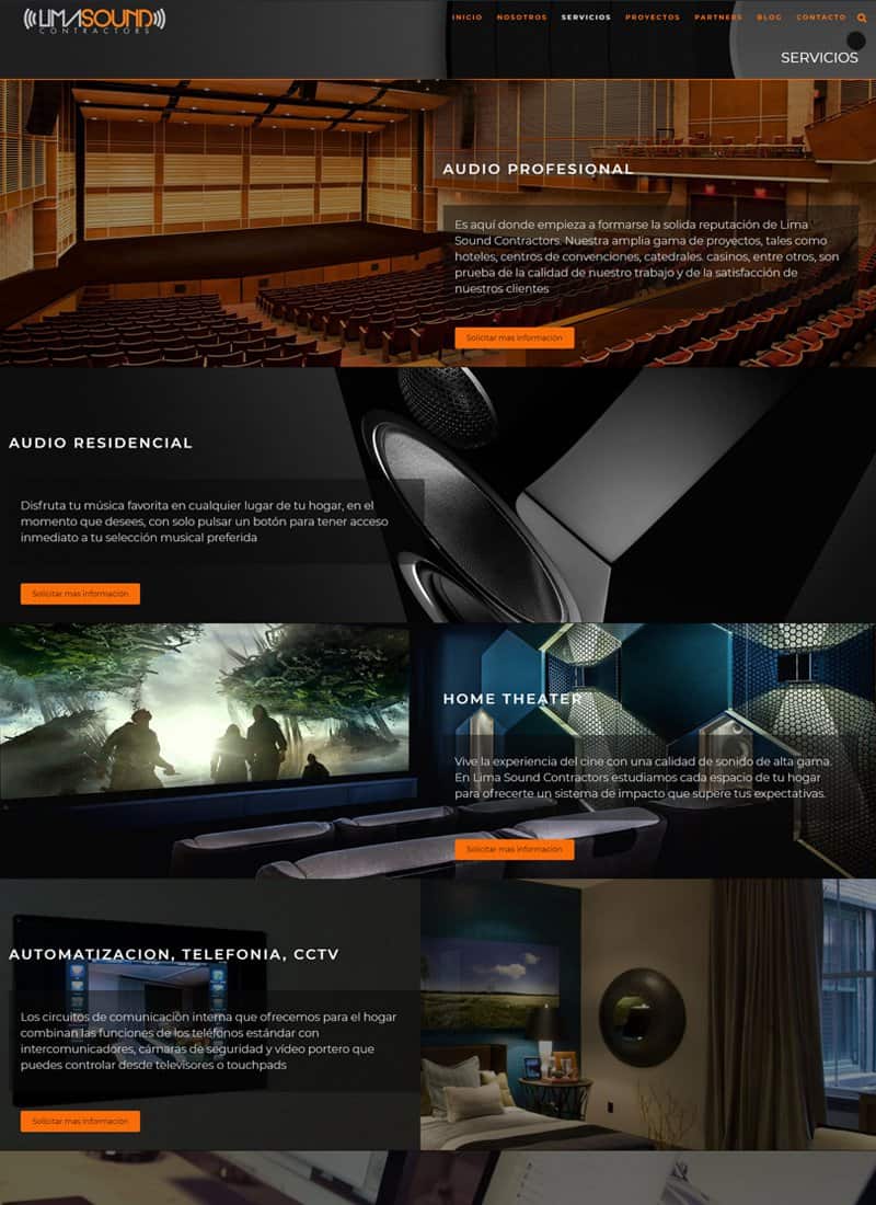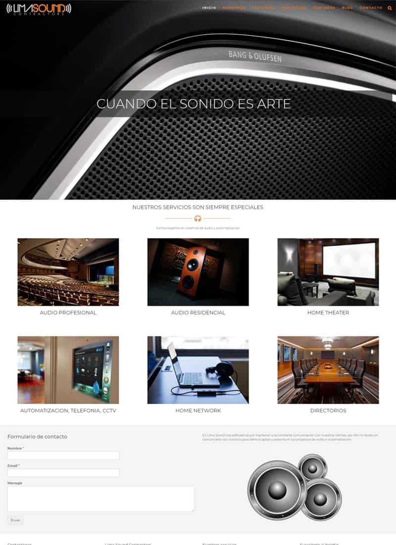 Limasound, una de las principales empresas de audio profesional en el Perú nos encargo la tarea de actualizar su pagina web a estándares modernos, buscando funcionalidad y mejorando la interacción con el cliente. El resultado es una pagina 100% administrable por Limasound donde se pueden agregar y editar los contenidos con nuevos lanzamientos, productos o eventos. Destacar los servicios y la calidad de los productos es parte de una estrategia de marketing general, donde la pagina web cumple un rol importante.