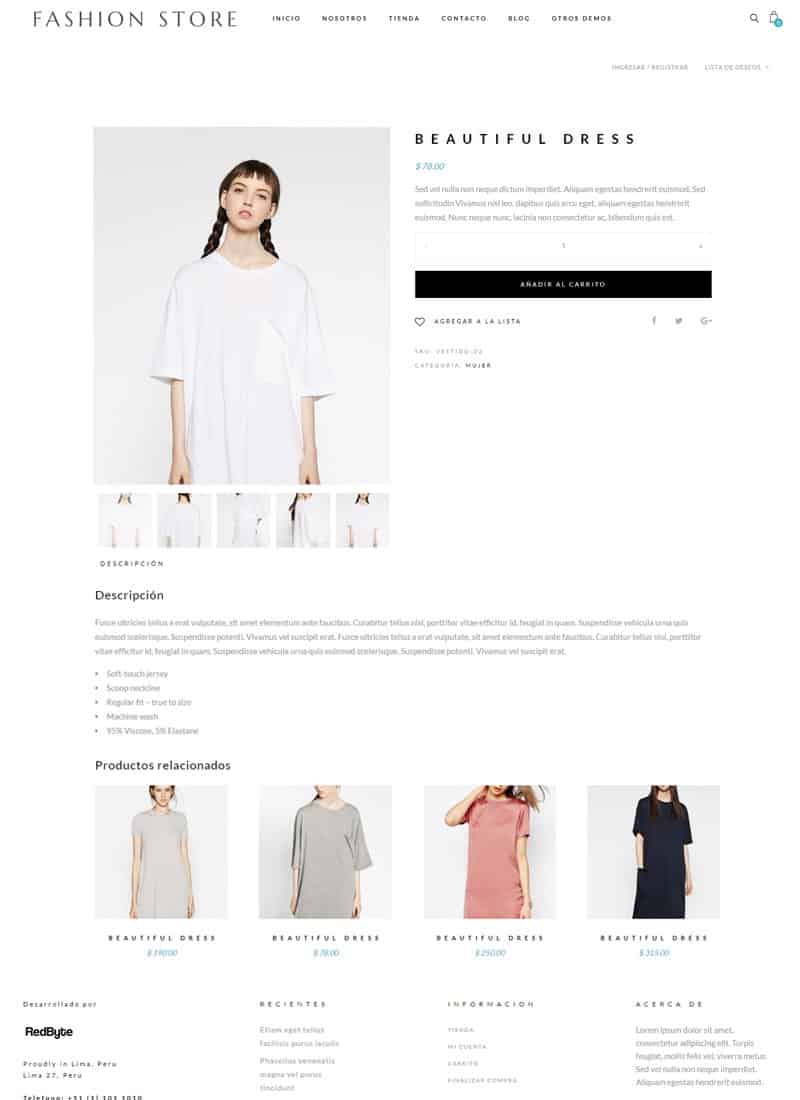 Explora nuestra demo de una empresa de moda que necesita promocionar productos a potenciales clientes. Asimismo ofrece un carrito de compras para vender o cotizar. Un blog integrado facilita crear una comunidad fiel a la marca y mejorar las ventas a largo plazo.