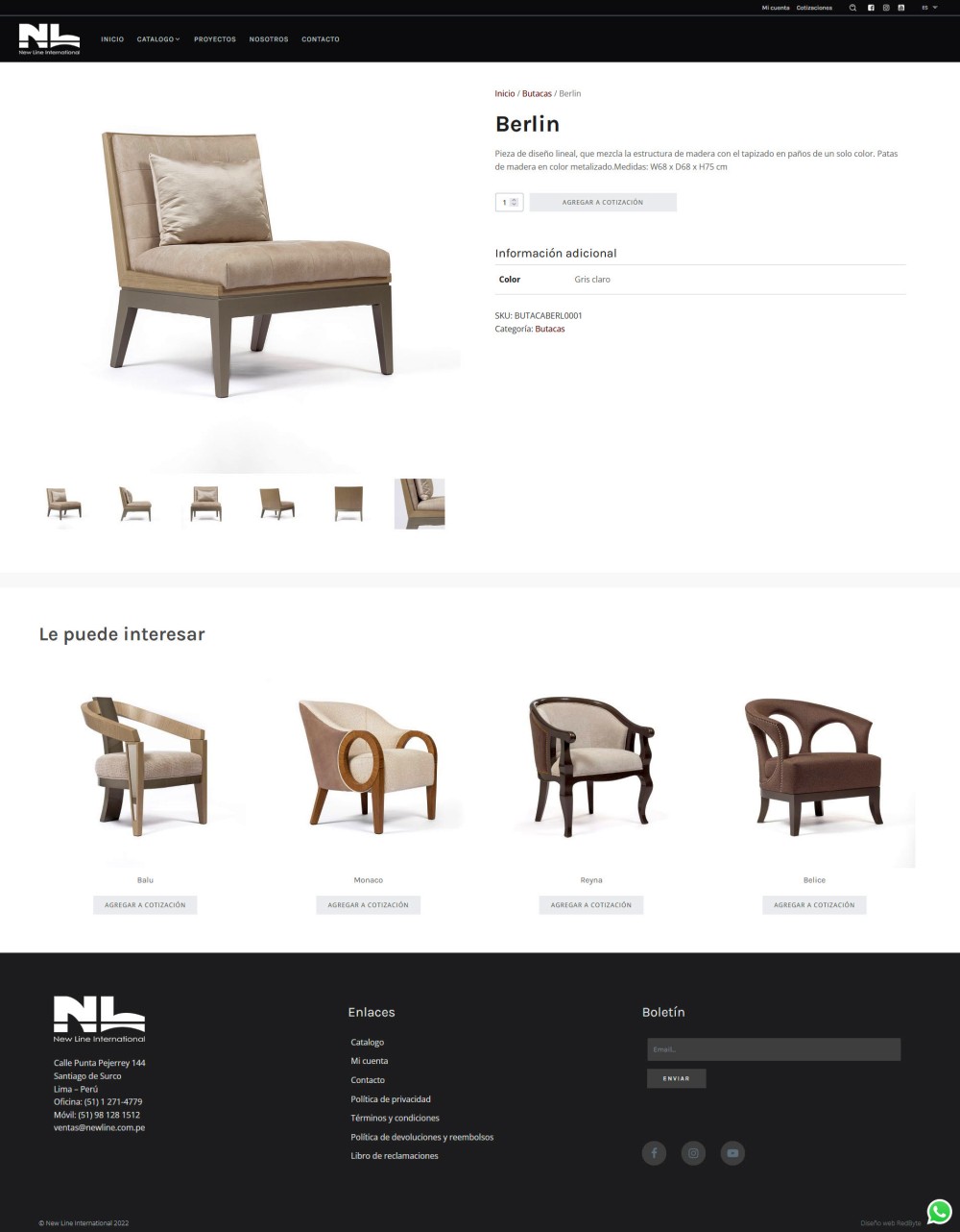 Desarrollo de plataforma web con catalogo de productos tipo showroom. El catalogo es 100% administrable por el cliente. Sistema de cotizaciones con registro y administración a través un panel de control. Menú de categorías flotante. Múltiples galerías de imágenes. Desarrollo en dos idiomas (multilenguaje). Área para clientes, seguimiento de cotizaciones. Posibilidad de conversión a comercio electrónico.