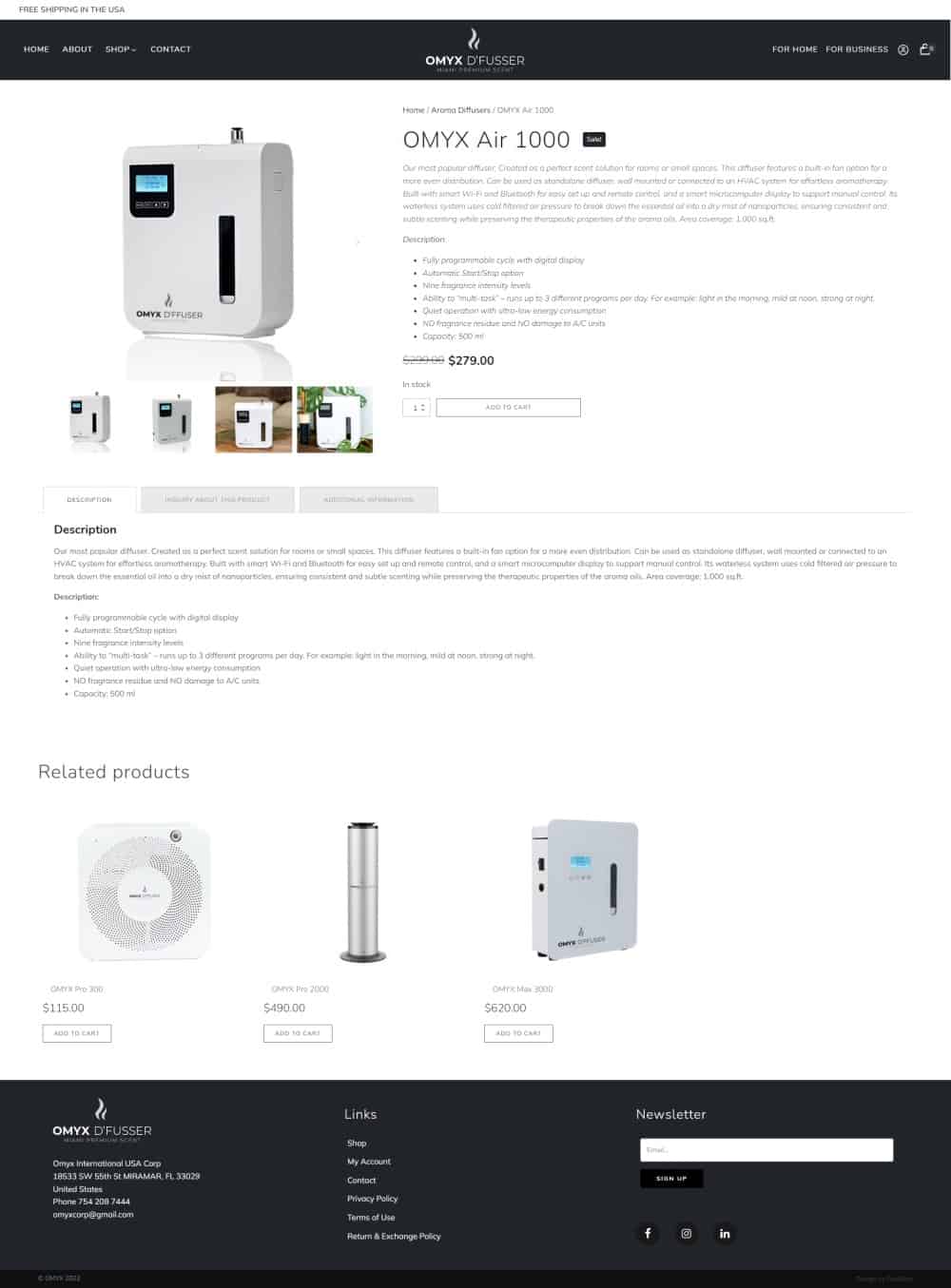OMYX es una empresa con sede en Miami enfocada en ofrecer difusores de aceite y aromas de alta calidad.