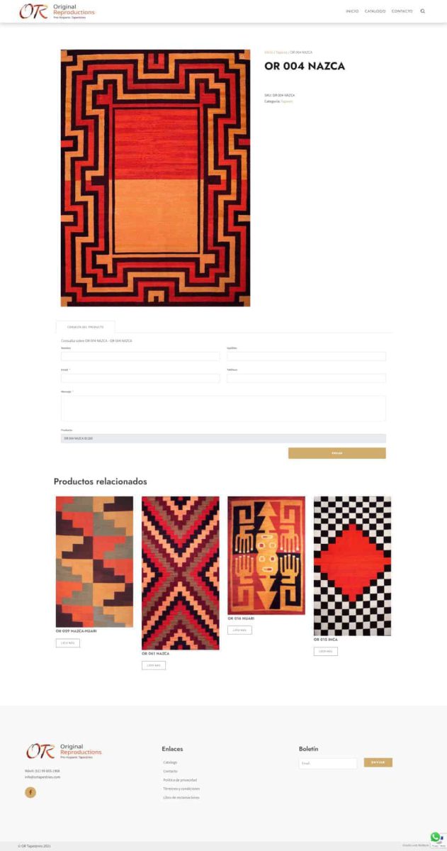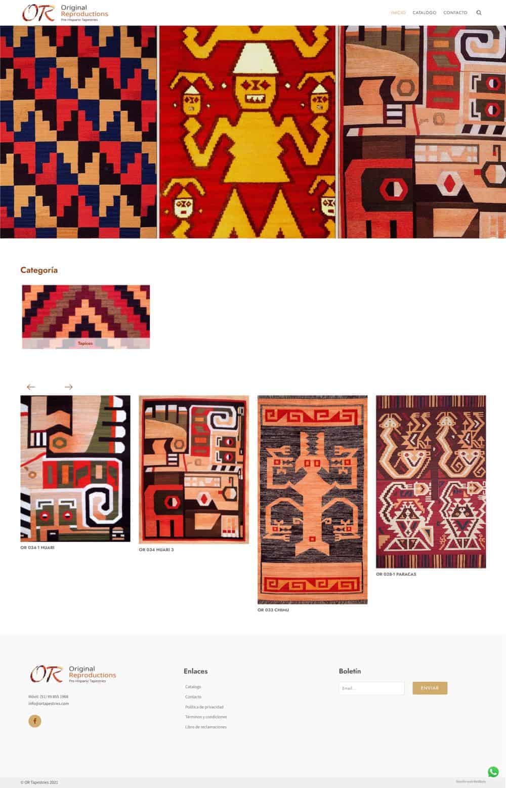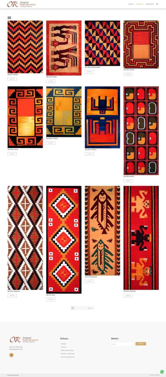 Diseñamos una pagina web para mostrar el catalogo de tapices y textiles basados en las antiguas culturas del Perú.