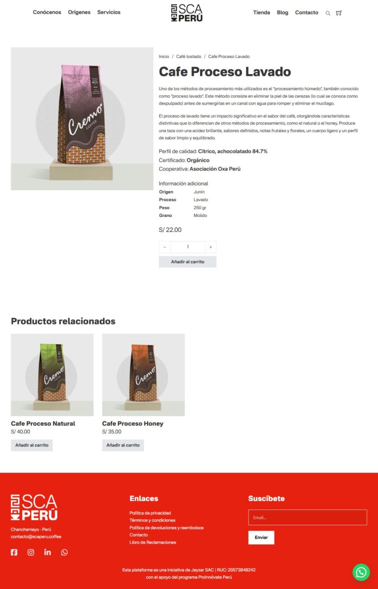 Es una iniciativa de la empresa Jeyzar SAC para construir una e-commerce de cafés de especialidad que tendrá como protagonista a la marca Cremo Coffee y que, además, albergará a otras marcas de cafés peruanos de especialidad tostados. Es una iniciativa cofinanciada por Pro Innóvate.
