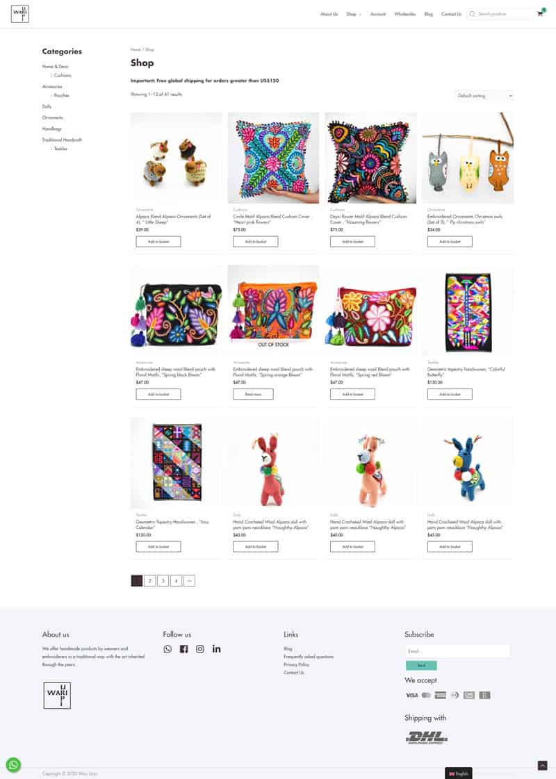 Desarrollo de comercio electrónico para ventas al exterior. Implementación de sistema para múltiples idiomas. Sistema de tarifas por zonas e integración a pasarela de pagos