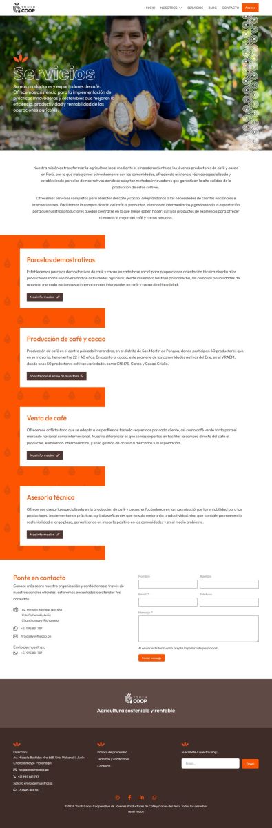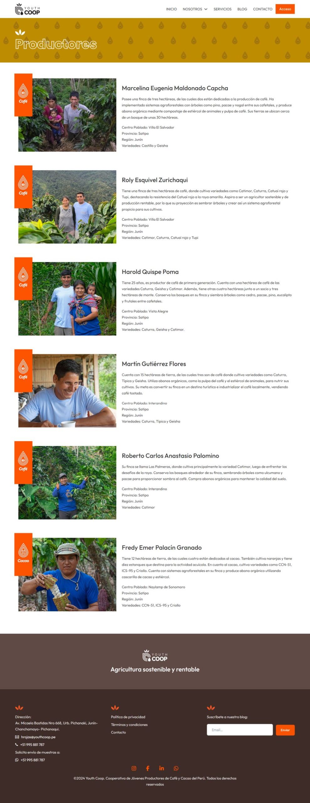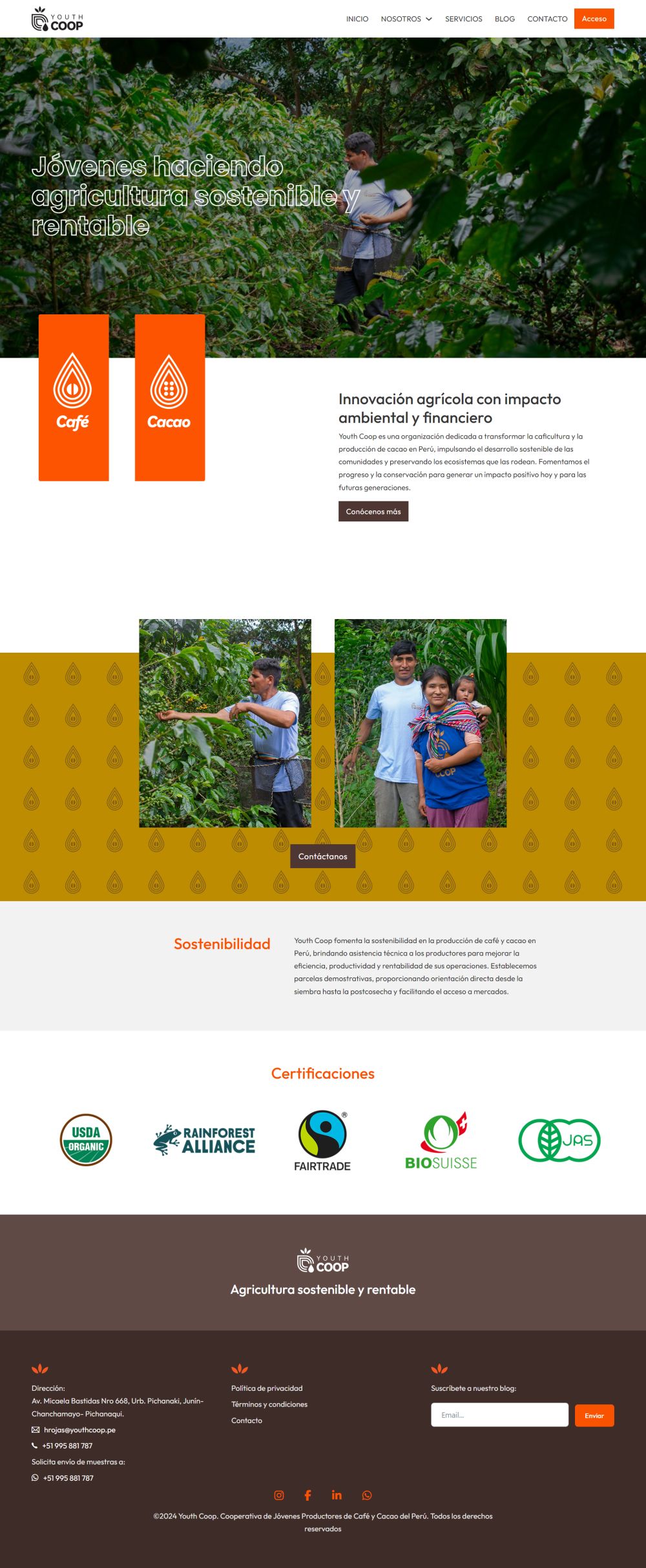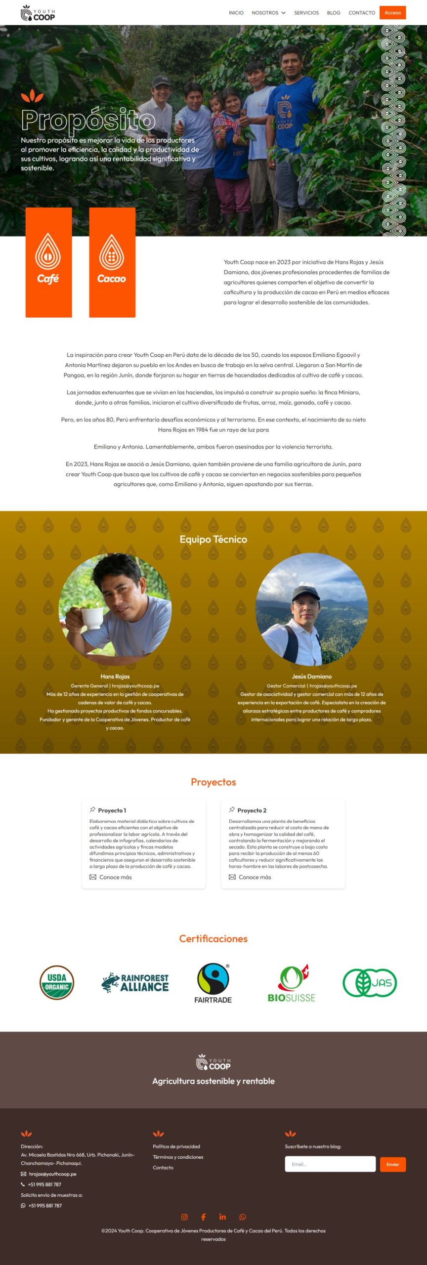 Youth Coop nace en 2023 por iniciativa de Hans Rojas y Jesús Damiano, dos jóvenes profesionales procedentes de familias de agricultores quienes comparten el objetivo de convertir la caficultura y la producción de cacao en Perú en medios eficaces para lograr el desarrollo sostenible de las comunidades.